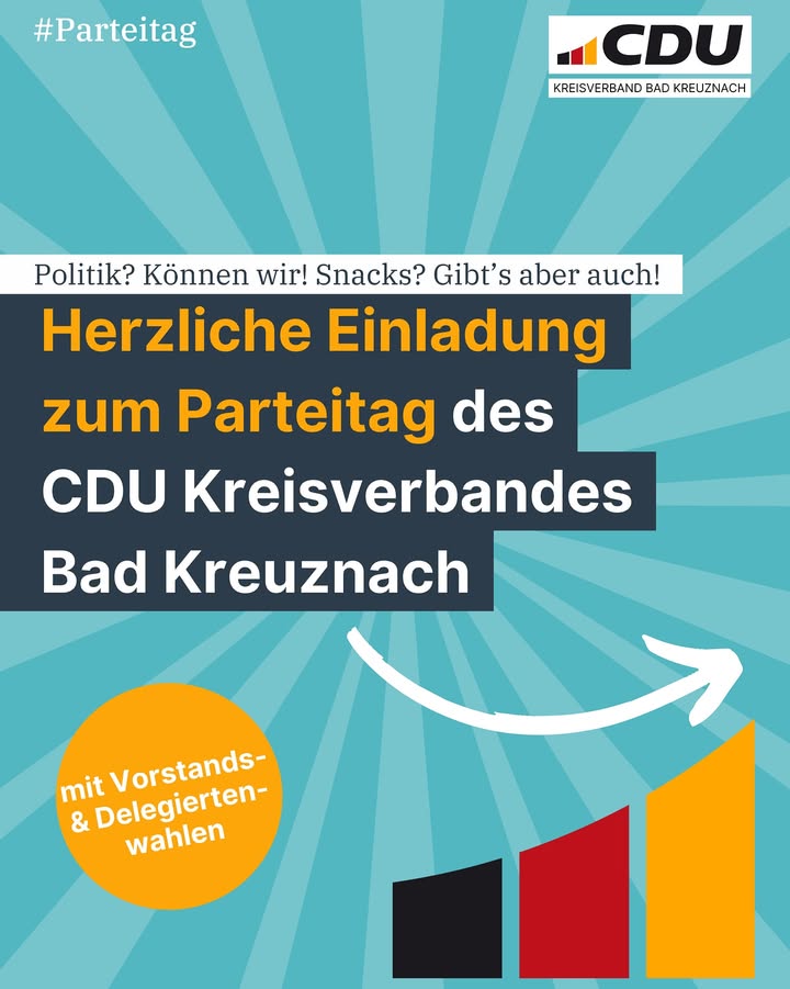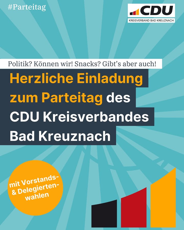 #Kreisparteitag: Herzliche Einladung zum Parteitag des CDU-Kreisverbandes Bad Kreuznach! 🗳️🥨 Am 28. Oktober 2025 um 18:30 Uhr treffen wir uns im Kurhaus am Rheingrafenstein (Kurhausstraße 25, Bad Münster am Stein). Auf der Tagesordnung stehen Vorstands- & Delegiertenwahlen — und natürlich auch gute Gespräche in geselliger […]